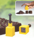 Erdpresse zum einfachen Herstellen von Substratblöcken 4x4x5 cm. Ganz nach individuellem Bedarf können Sie mit der Erdpresse aus Ihrem eigenen Gemisch von Erde und Nährstoffen genau so viele Substratblöcke/Erdtöpfchen herstellen wie Sie brauchen. Nicht mehr und nicht weniger. Und das Loch zum Einsäen oder Pikieren wird gleich mitgestanzt.