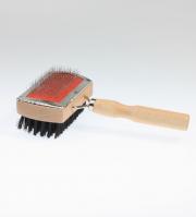 Tierbürste doppelseitigKein Verkletten und Verfilzen mehr! Mit dieser Hunde- und Katzenbürste pflegen Sie das Fell von Waldi und Miez seidenweich. Die feinen abgewinkelten Drahtstifte ziehen lose Haare locker raus. Besonders die zu Verklettungen neigenden Stellen bleiben bei regelmäßiger Pflege leicht kämmbar. Die Nylonborsten auf der Rückseite geben dem Fell einen seidigen Glanz. Für alle Fellarten geeignet. Leicht zu reinigen. |