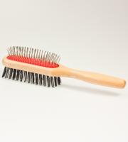 Feine Tierbürste, doppelseitigFür alle Tier- und Fellarten geeignet. Verschafft seidigen Glanz, entfernt Schmutz und ausgefallene Haare. Die feinen Drahtstifte entfernen leichte Verklettungen und Verfilzungen, die weiche Nylonseite bürstet Schmutz weg und verleiht dem Fell seidigen Glanz. |