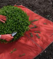 Formschnitt-TuchSauberes Beschneiden von Buchsbaum und anderen Solitärpflanzen mit dem planto Formschnitt-Tuch. Kein mühsames Zusammenrechen und Auflesen mehr! Ihr Garten oder Balkon bleibt sauber. Nach dem Beschnitt rollen Sie das Tuch an den Seiten auf, ziehen es an einem der Tragegriffe heran und dann ab zum Komposthaufen mit dem Gartenabfall. Stabiles Baumwollgewebe mit verstärkten, farblich abgesetzten Kanten. Überlappung zum leichten Drapieren und für sauberes Arbeiten. Maschinenwaschbar bei 30º C. |